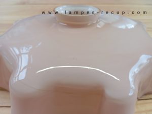Abat jour ancien opaline a bords juponnés rose diam 25