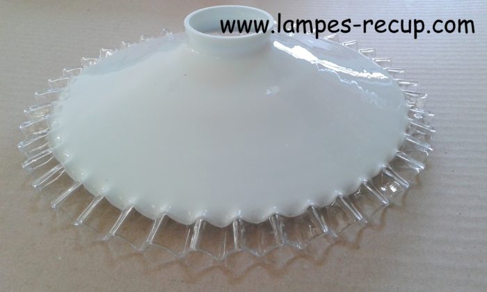 Abat-jour opaline vintage bords plissés diamètre 25 cm