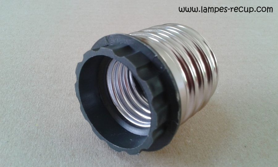 Adaptateur E40 E27 pour convertir les douilles industrielles , cet accessoire très pratique vous permet de convertir un pas de vis E40 en E27 . Les douilles E40 équipent souvent les lampes et suspensions industrielles, or les ampoules au format industriel éclairent souvent trop pour un usage domestique . Lors de l’utilisation de cet accessoire, il est important de bien visser les deux parties pour éviter les échauffements .