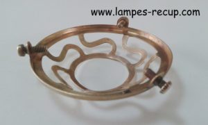griffe laiton ancienne opaline luminaire trou de 28 mm , occasion en bon état . Modèle de fixation pour luminaire ancien, cette griffe dite de » 28 » est de forme un peu différente que les modèles que l’on peux trouver plus couramment … elle est idéale pour adapter une douille en porcelaine ( diamètre de 28 aussi ) a un abat-jour vintage, émaillé ou opaline présentant un collerette , cette griffe est en laiton épais et sa qualité est supérieure a celle des modèles de réédition .REF: GLA2852