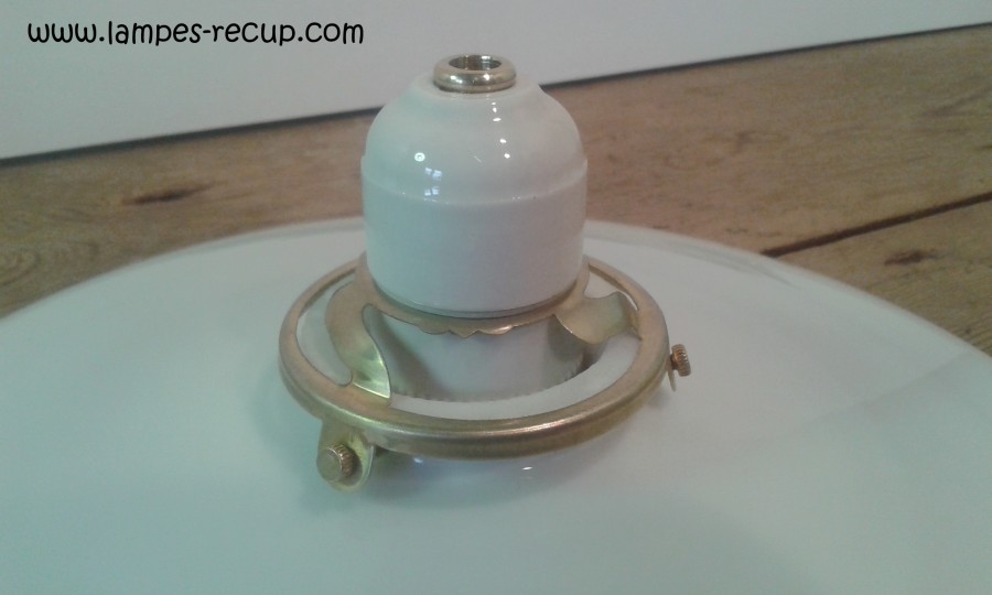 suspension vintage opaline lisse diamètre 27 cm, datant des années 50/60, cette suspension est en très bel état, elle est composée d’un douille en porcelaine B22 et d’une griffe en laiton, elle est vendue électrifiée avec un câble textile tressé de 1 mètre de long et est prête a brancher, un kit de fixation est fourni avec ce luminaire, une chape de suspension, un pavillon cache fils et un jeu de domino. Si vous souhaitez un câble textile de grande longueur, vous pouvez nous contacter a : contact@lampes-recup.com