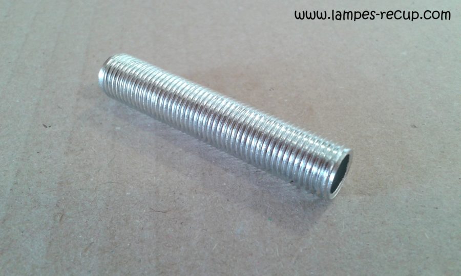 Tige filetée creuse M10 lustrerie acier bichromaté 5 cm, cet accessoire est idéal pour la création et la restauration de vos lampes et suspensions . Les douilles équipées de cette embase se vissent parfaitement sur ce tube . Le pas de vis 10×1 est standard , il remplace l’ancien pas de vis 10.85 x 1.33 appelé » Pas Des Becs » . Existe en version : 50 cm , 25 cm , 10 cm , 5 cm . Pour vos créations, n’oubliez pas les écrous et rondelles M10 lustrerie .